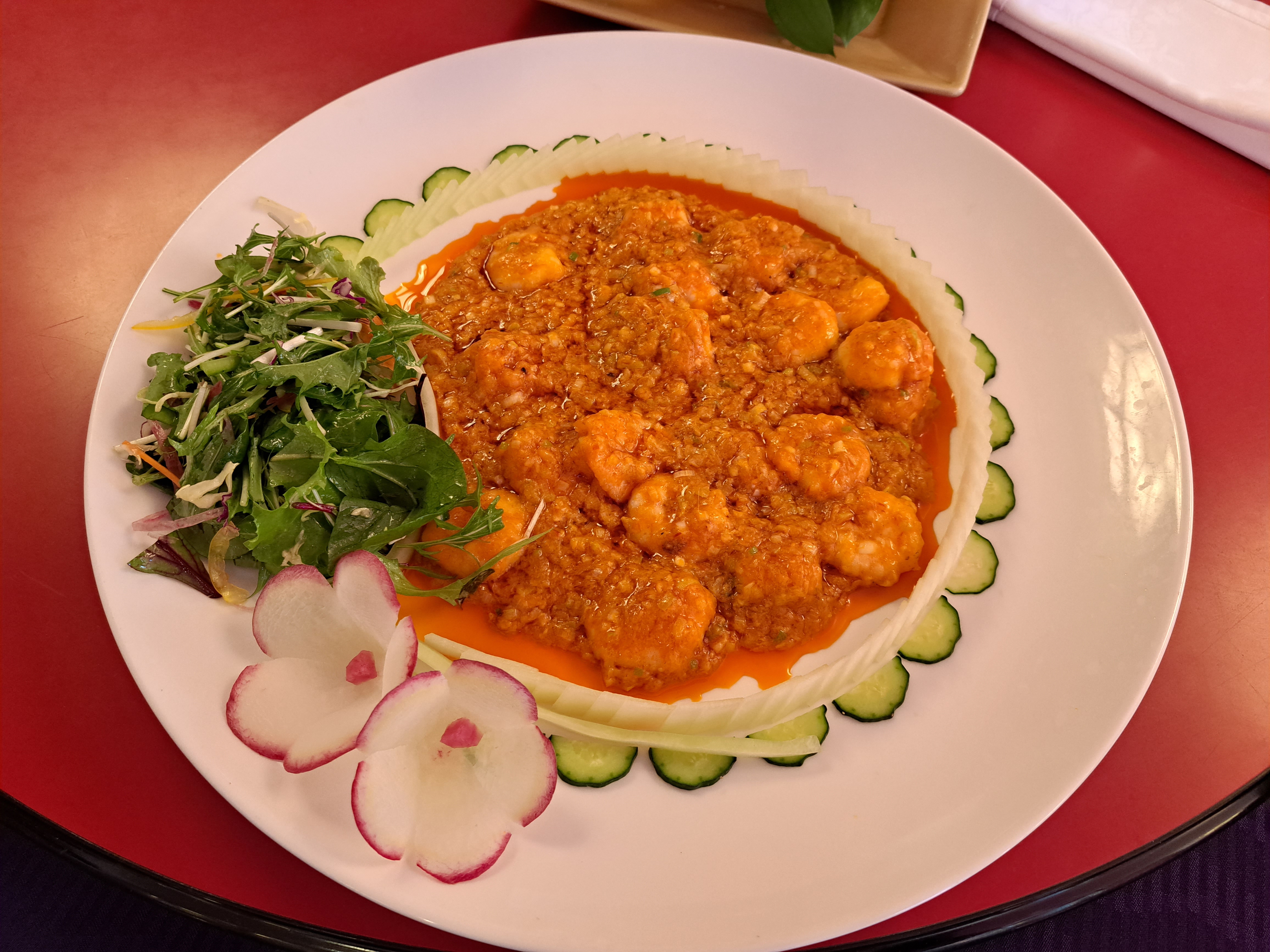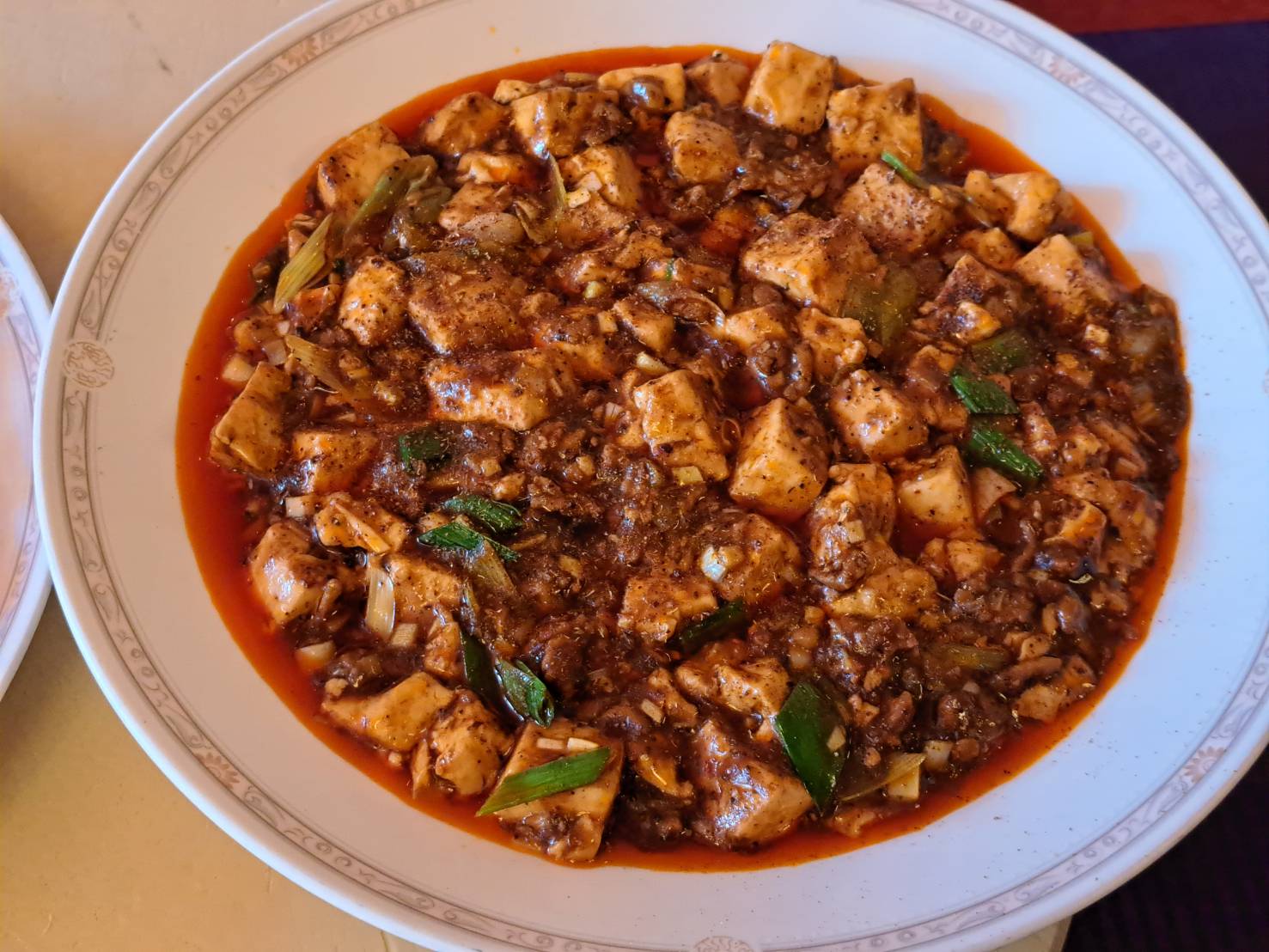 テーブルの中央には野菜をカットして作った鳥などの素晴らしいオブジェが飾られており、四川料理のフルコースを楽しく堪能しました。